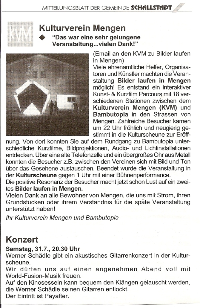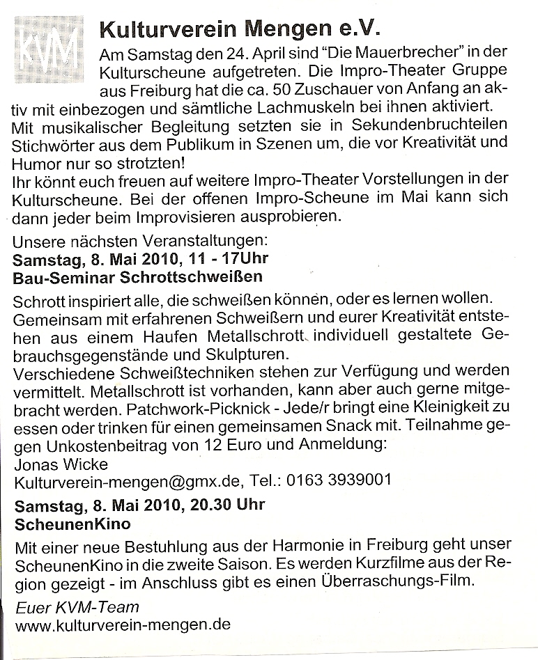 Unsere Veranstaltungen werden regelmäßig im Schallstädter Blättle, Rebland Kurier und in der Badische Zeitung angekündigt.